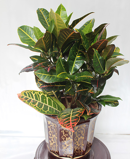 變葉木喜高溫、濕潤和陽光充足的環境,不耐寒。生長適溫為20~30℃,冬季溫度不低于13℃。短期在10℃,葉色不鮮艷,出現暗淡,缺乏光澤。溫度在4~5℃時,葉片受凍害,造成大量落葉,甚至全株凍死。變葉木喜濕怕干。生長期莖葉生長迅速,給予充足水分,并每天向葉面噴水。但冬季低溫時盆土要保持稍干燥。如冬季半休眠狀態,水分過多,會引起落葉,必須嚴格控制。變葉木屬喜光性植物,整個生長期均需充足陽光,莖葉生長繁茂,葉色鮮麗,特別是紅色斑紋,更加艷紅。以5萬~8萬勒克斯最為適宜。若光照長期不足,葉面斑紋、斑點不明顯,缺乏光澤,枝條柔軟,甚至產生落葉。