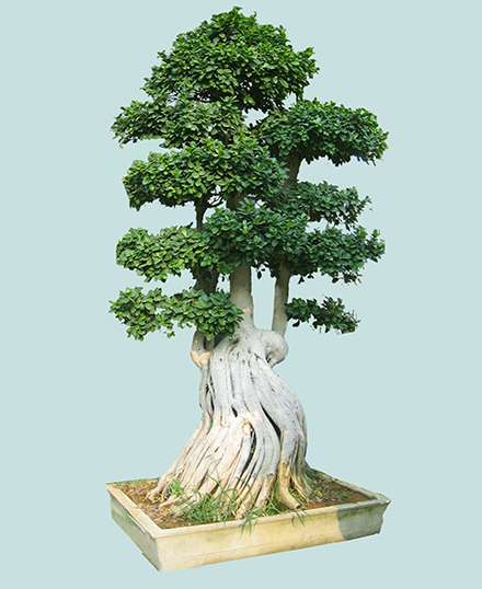 榕樹盆景為桑科榕屬喬木,原產于熱帶亞洲。榕樹以樹形奇特,枝葉繁茂,樹冠巨大而著稱。而榕樹盆景則是取材榕樹,觀賞榕樹的樹樁及根莖葉奇異形態為目的,通過各種手法,控制其生長發育,使其成為獨特的藝術造型的盆栽榕樹盆景。